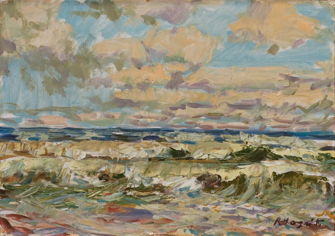 Õli, papp; 35,2 x 50 cm; all paremal pruuni värviga: RSagrits, pöördel: 1623 1962 jaanuar