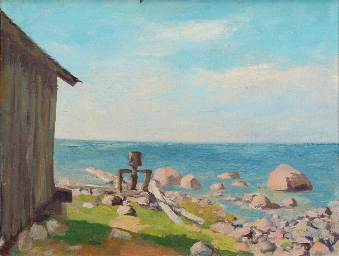 Hea meremaal. Sagritsa jaoks ebaharilik noa-pahtlitehnika võib olla tingitud rannaäärse külmunud mere kuvandist. Tavaliselt tegi pöördele märkusi teose loomisaja kohta kunstniku abikaasa Alice Sagrits, võimalik, et ka antud juhul.