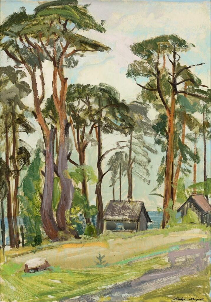 Õli, papp; 66,1 x 46,7 cm; all paremal: Kalju Nagel